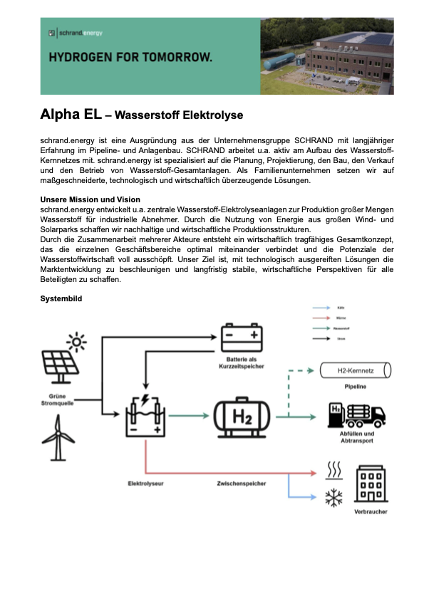 Die Alpha EL, unser leistungsstarker PEM-Elektrolyseur, lässt sich flexibel an individuelle Kundenanforderungen anpassen und ermöglicht eine zuverlässige, skalierbare Produktion von grünem Wasserstoff.